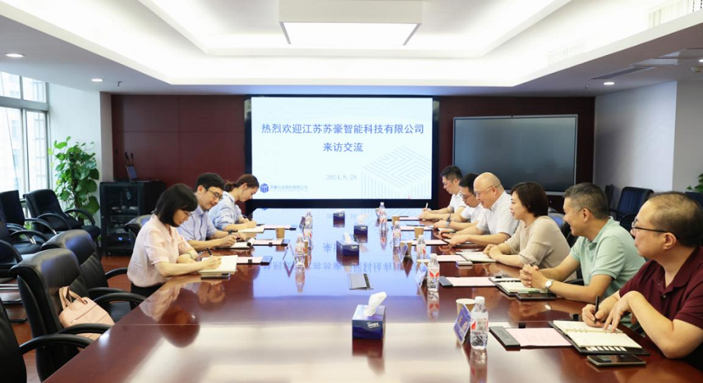 On the afternoon of August 28th, Li Ning, Deputy Secretary of the Party Branch and Executive Vice General Manager of Jiangsu SOHO Intelligent Technology Co., Ltd., and his delegation visited SOHO Holly. The Party Secretary and Chairman of SOHO Hongye, Ma Hongwei, warmly received them and the two sides had in-depth exchanges on information technology construction, business win-win cooperation, and other aspects. Cheng Rou, Deputy General Manager of SOHO Zhike, Jiang Haiying, General Manager and Deputy Secretary of the Party Committee of SOHO Holly, and Zhu Xiaodong, Financial Manager and Party Committee Member, attended the symposium.